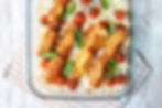 Place the salmon fillets on top of the rice, add the cherry tomatoes and basil leaves, then sprinkle with chilli flakes.